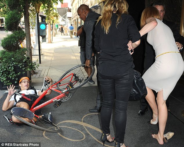 Is this the start of the war? The ceremonial glove slap across the face of America? I mean it’s one thing for bicyclists to attack random people on the street and fly under the radar. But assaulting major celebrities in broad daylight in the middle of the sidewalk? Is this what America has come to? A beautiful A-List actress can’t even attend New York Fashion Week without being run over by a rampaging pedalhead? Well all I can say is this isn’t the America I signed up for.