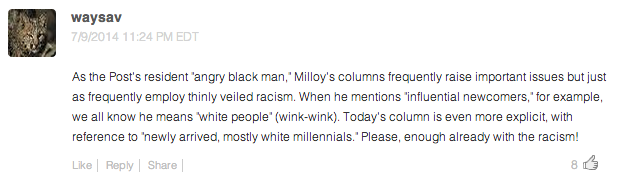 This guy! Courtland Milloy, you beautiful bastard! I’ve been down on the Washington Post for some time now, but once in a while they step up and show they’re still capable of knocking one out of the park.